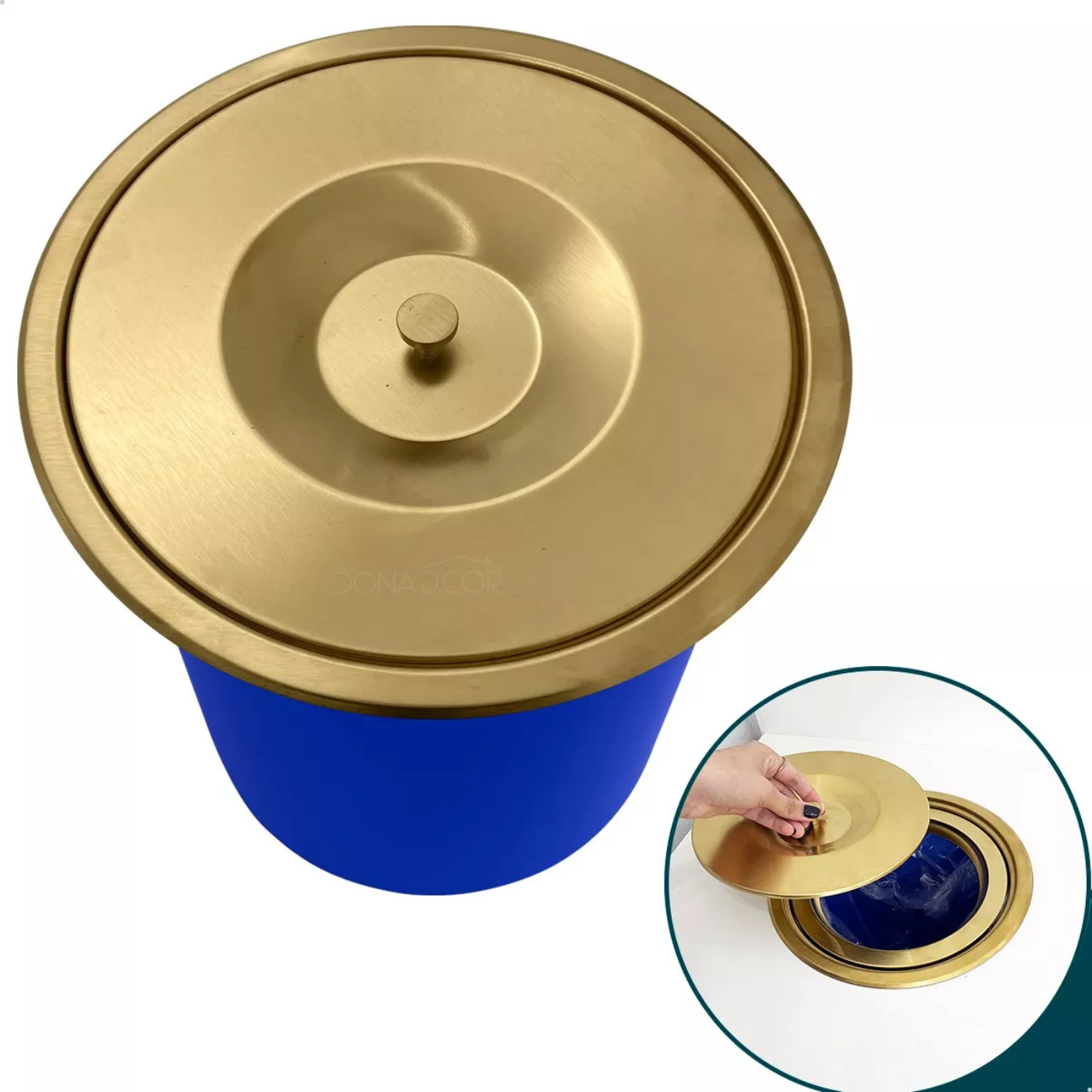 Cor: Dourado Escovado Fosco(aro e tampa) com cesto azul