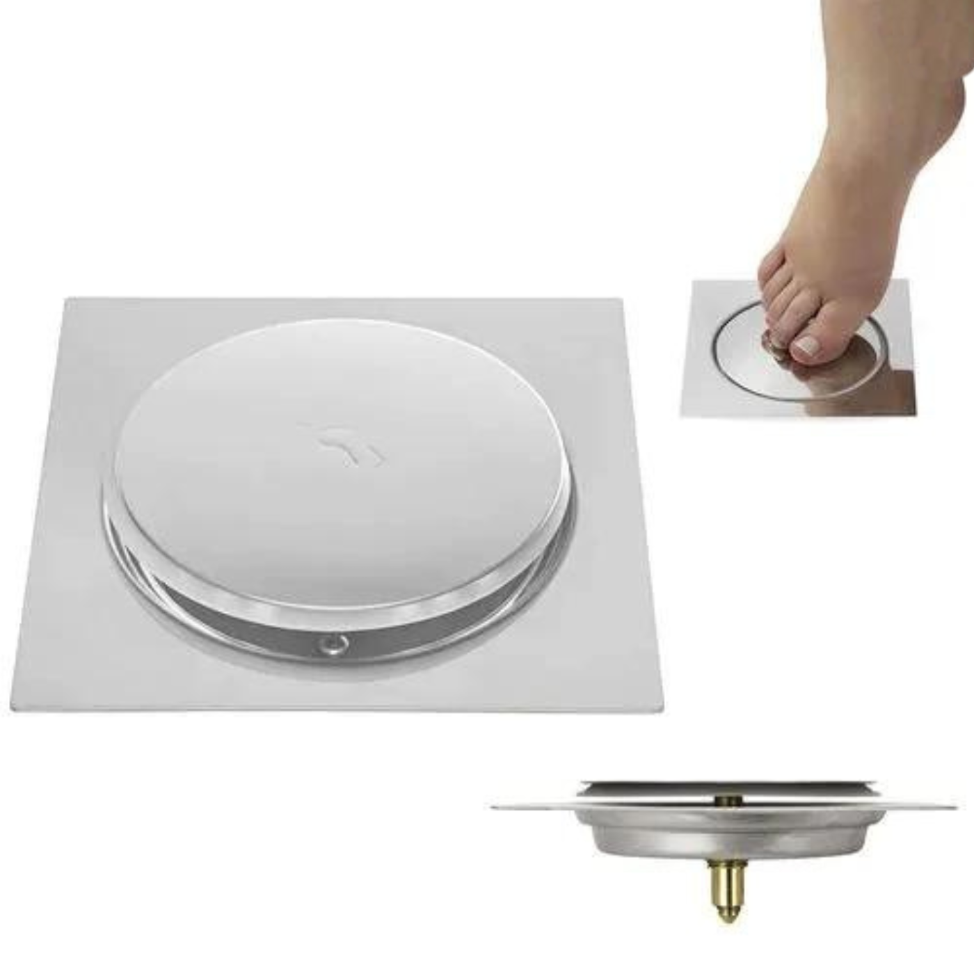 1 Ralo Click Inteligente Quadrado de Aço Inox para Banheiro 10x10