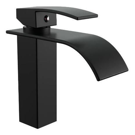 Torneira Banheiro Lavabo Cascata Bica Baixa Misturador Monocomando Preto Black Fosco - Água Quente e Fria