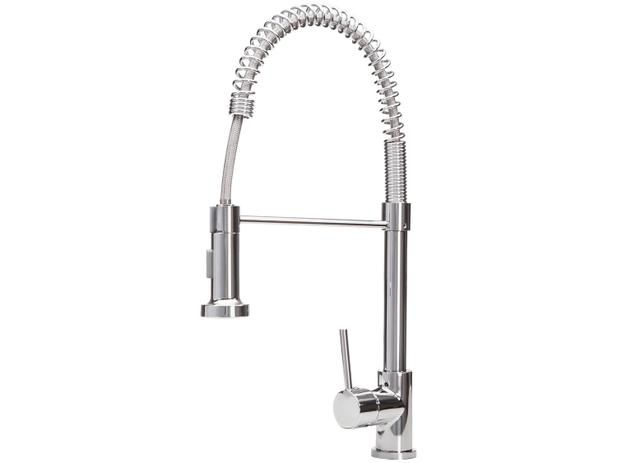 Torneira gourmet de design moderno e robusto, projetada para uso em cozinhas domésticas ou industriais. Essa torneira possui uma saída de água flexível com spray permitindo assim a lavagem de alimentos e utensílios de forma mais prática e controlada. A torneira contém ainda um misturador monocomando, o qual pode ser conectado à água quente e fria para controle de vazão e temperatura através de um único acionamento. Alternativamente, é possível adaptá-la também para uso apenas com água fria.